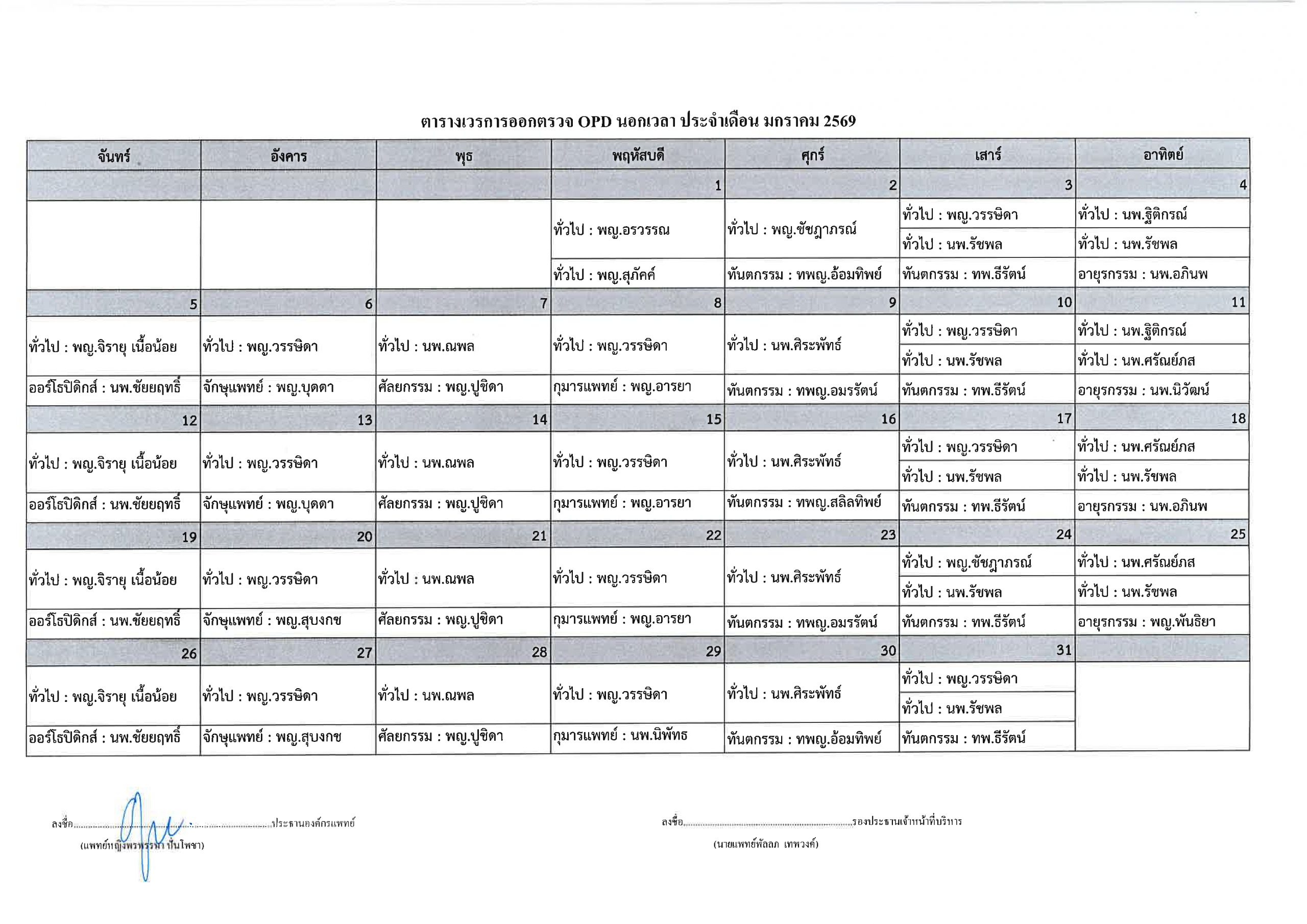 ตารางแพทย์ออกตรวจนอกเวลา