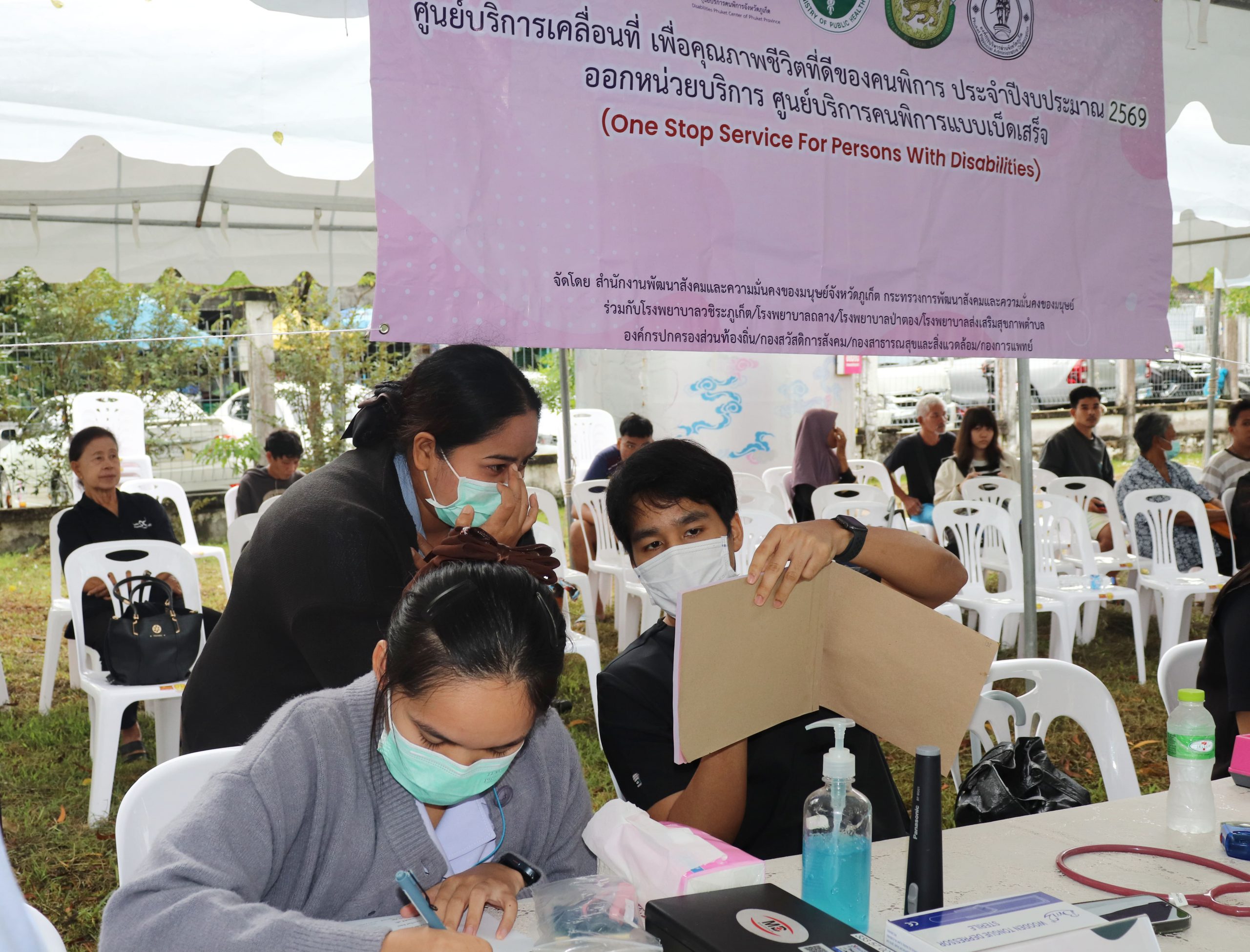 โรงพยาบาลองค์การบริหารส่วนจังหวัดภูเก็ต นำโดยนายแพทย์ณัฐนนท์ อรุณแสง แพทย์เวชปฏิบัติทั่วไป พร้อมเจ้าหน้าที่โรงพยาบาลองค์การบริหารส่วนจังหวัดภูเก็ตเข้าร่วมกิจกรรม “พม.ใกล้คุณ บูรณาการพัฒนาคุณภาพชีวิตคนทุกช่วงวัย” ร่วมบูธกิจกรรมออกบัตรประจำตัวคนพิการ เพื่อตรวจวินิจฉัย ประเมินประเภทความพิการและออกเอกสารรับรองความพิการ (One stop service for person with disabilities) ณ สวนนวมินทรราชา (ขุมน้ำบางมะรวน) ตำบลศรีสุนทร อำเภอถลาง จังหวัดภูเก็ต