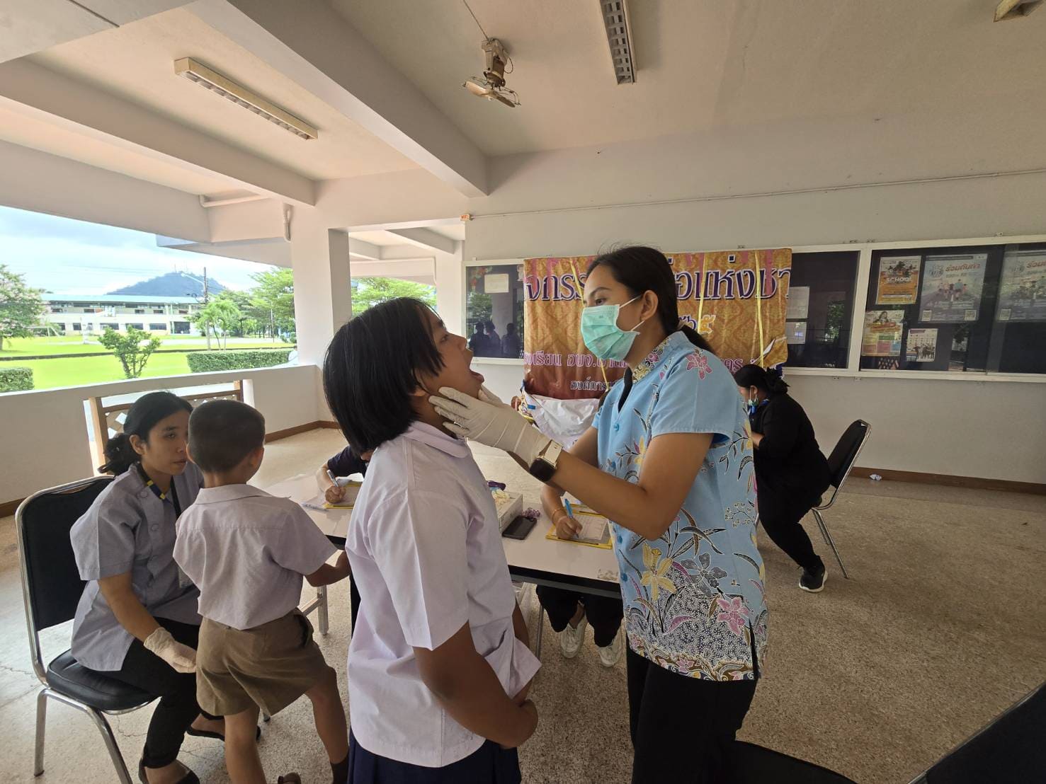 3. ให้บริการตรวจสุขภาพช่องปากเบื้องต้น ดูจำนวนฟันแท้ ฟันน้ำนม จำนวนฟันที่ผุและเคลือบฟลูออไรด์ พร้อมบันทึกข้อมูลลงในบัตรสุขภาพ และให้คำแนะนำการดูแลสุขภาพเพื่อคัดกรองสุขภาพนักเรียน ค้นหาเด็กป่วยและส่งเสริมสุขภาพอนามัยให้แก่นักเรียน